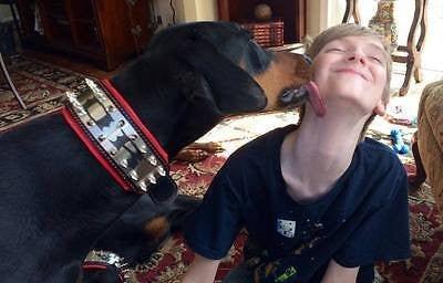 Este collar utiliza una base de cuero negro de 4 mm de grosor y nuestro acolchado de cuero suave patentado en el interior. La placa de acero inoxidable está montada con clavos roscados.
