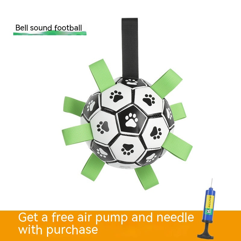 Ce ballon de football a beaucoup de nylon sur les bords, ce qui le rend facile à attraper pour les chiens.