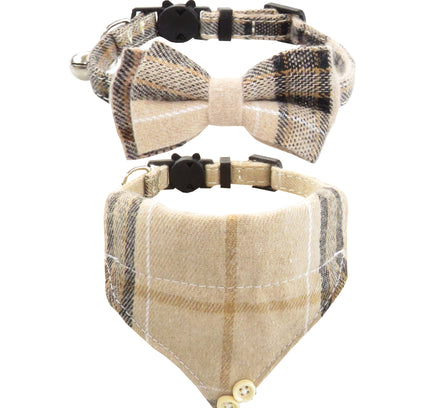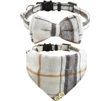Bow Tie Cat Collar Bandana Breakaway Pet Collar Bandana With Classic Plaid Adjustable Cat Collar With Scarf And Bowtie Necklace