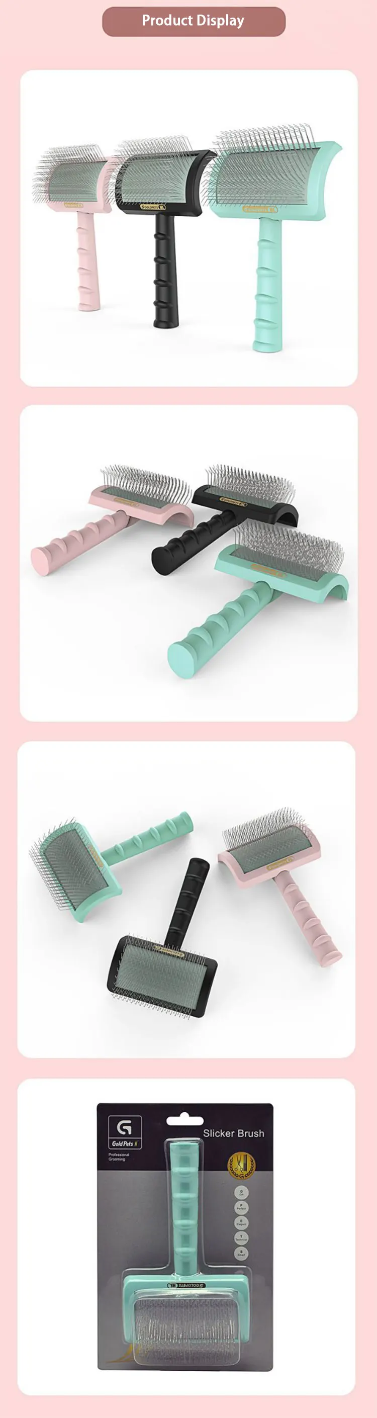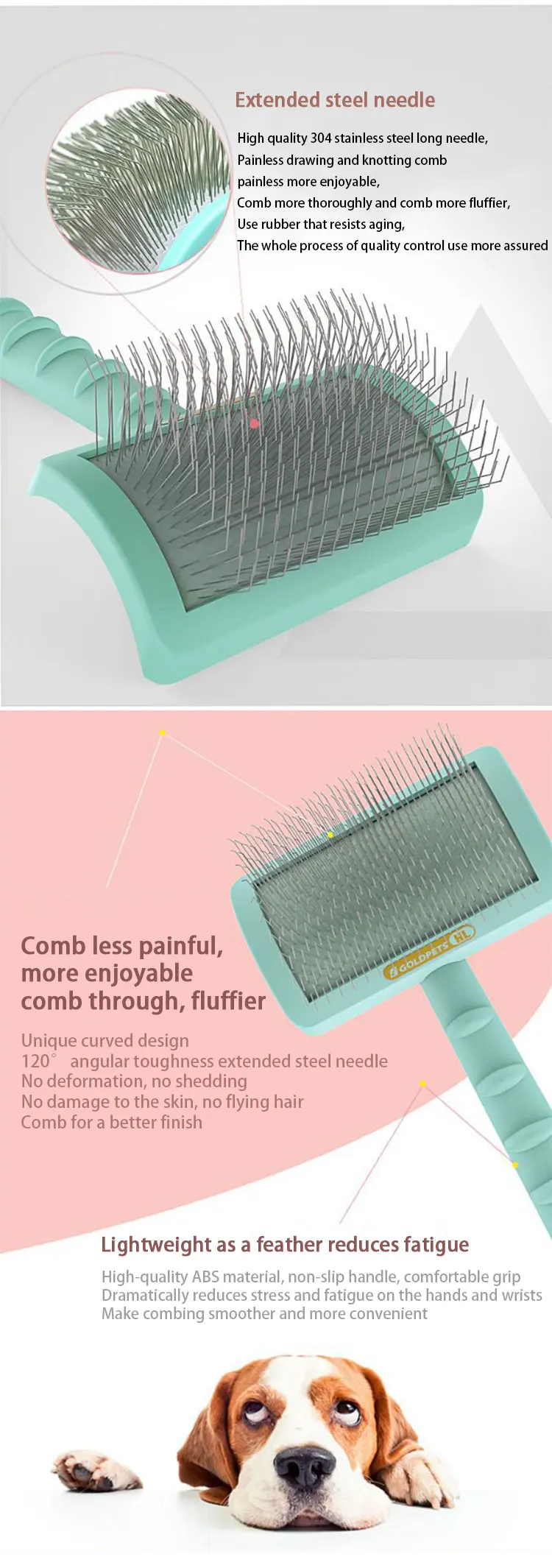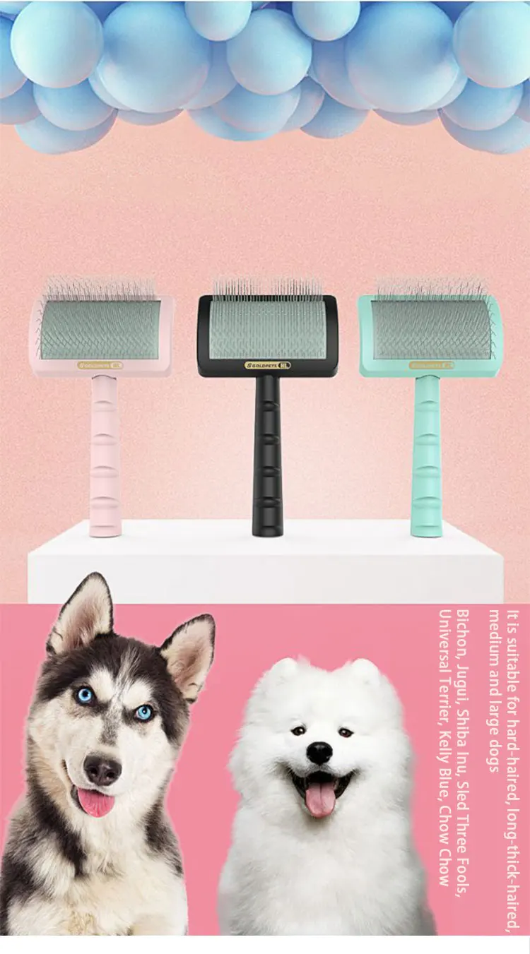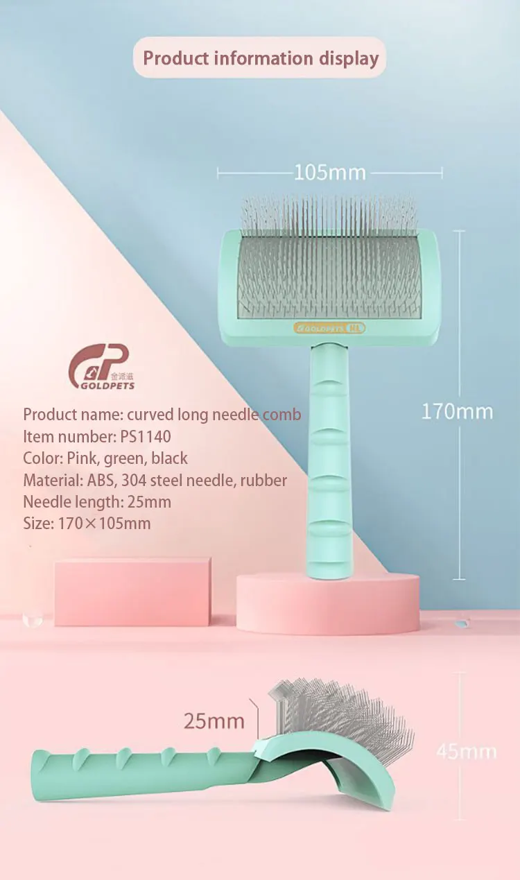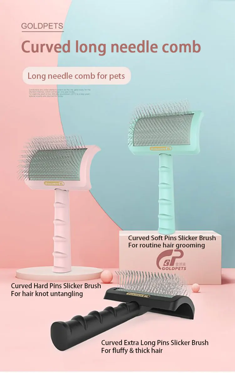 C-shaped Thick Back Hair Self Cleaning Curved Needle Comb Goldpets PS1140 Pet Hair Beauty Brushing Long Needle Comb