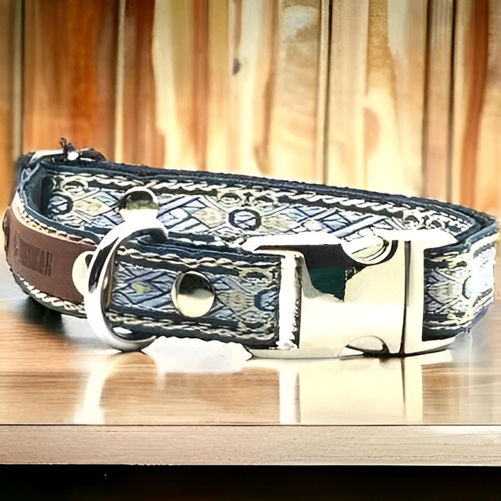 Elevate your dog's style with the Designer Dog Collar No. 5s. Available in a range of fashionable colors and patterns, this collar is the perfect accessory for any fashion-forward pup. Treat your furry friend to a touch of luxury with this designer collar, and watch them turn heads wherever they go.