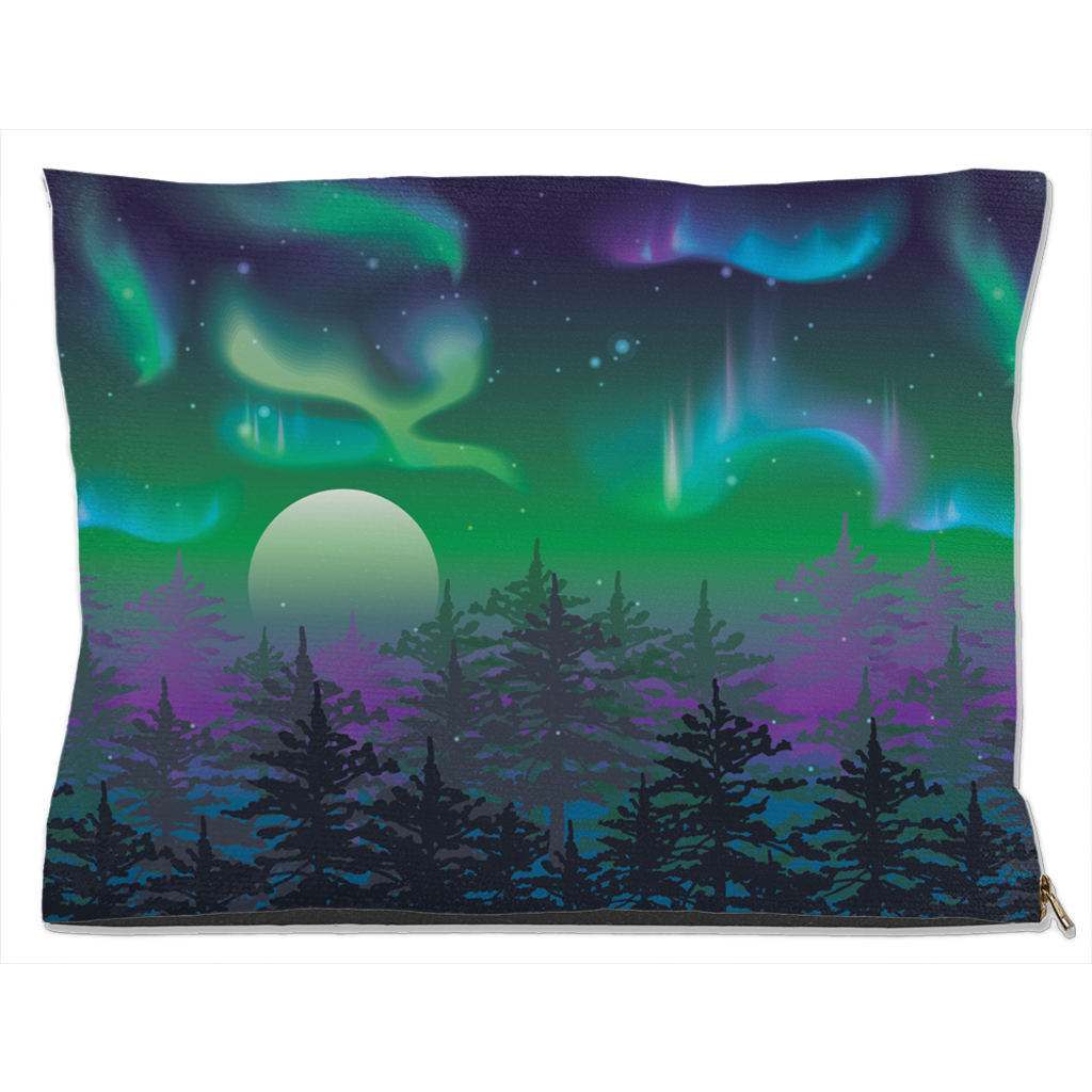 The indoor bed has a fleece top and a dark brown cotton duck backing.