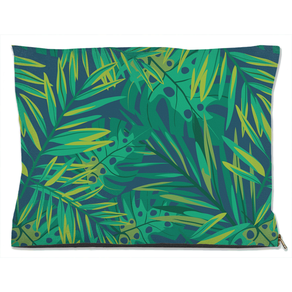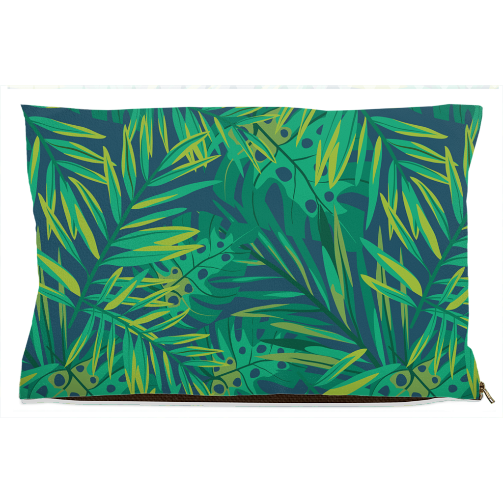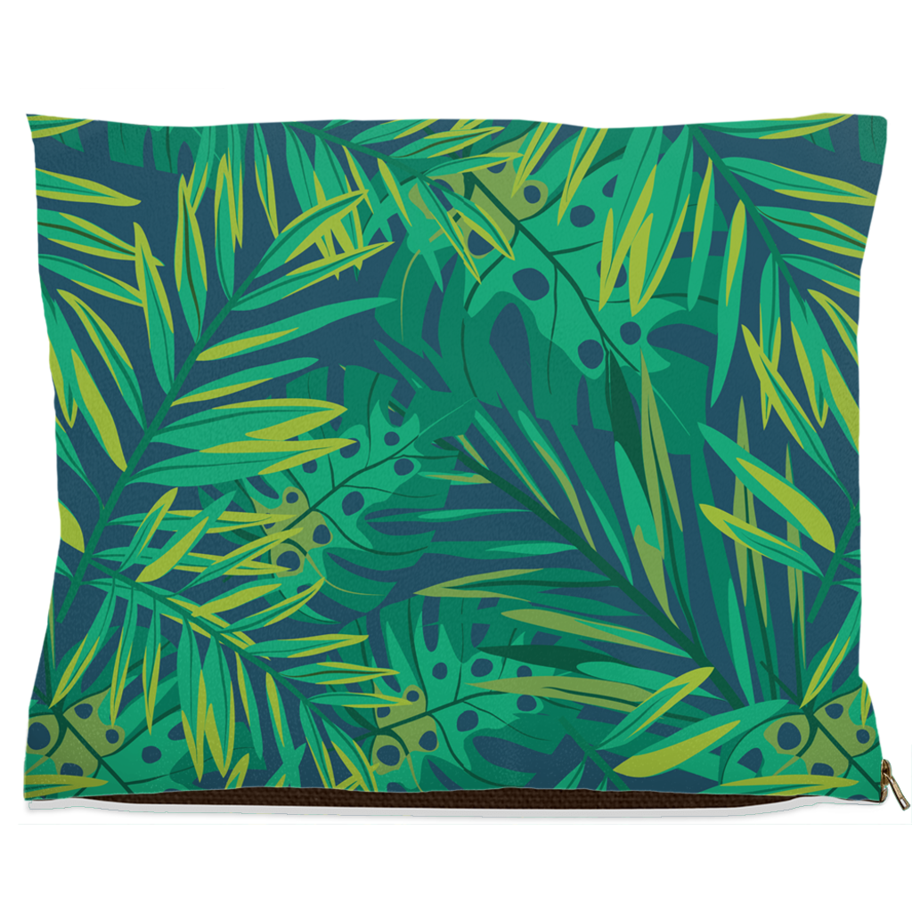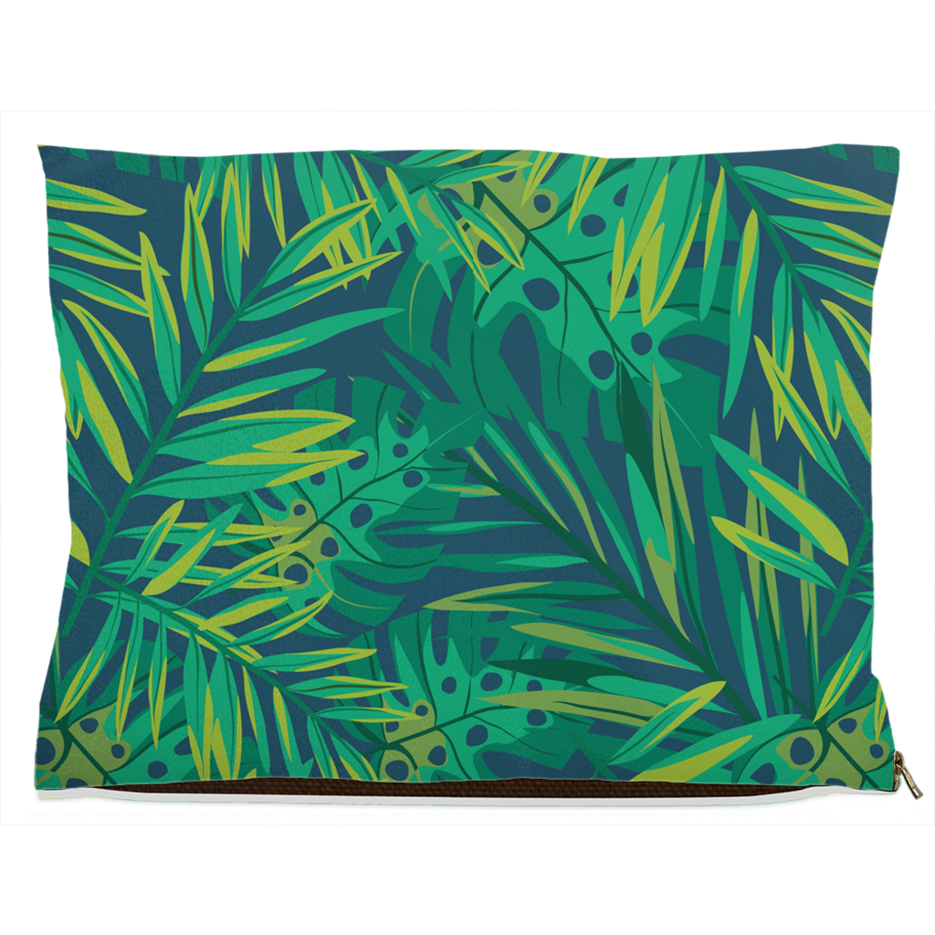 The indoor bed has a fleece top and a dark brown cotton duck backing.
